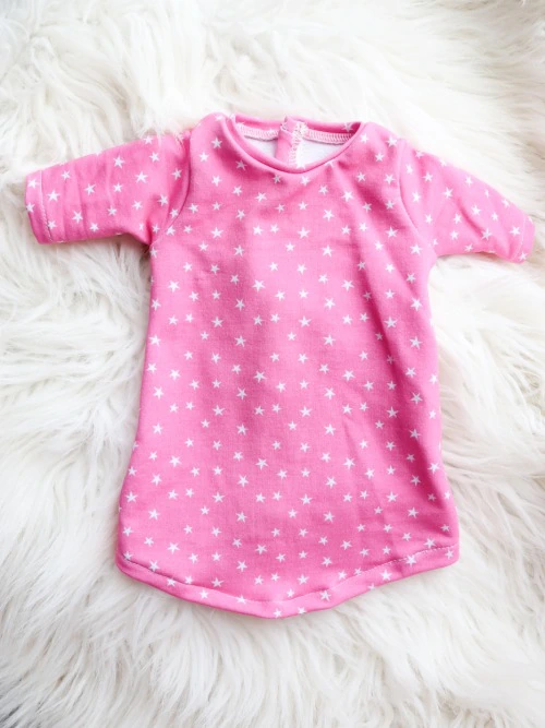 The doll nightgown fits 18″ dolls and has velcro closures at the back for easy changing.