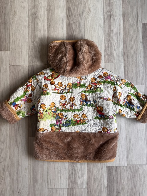 Straight from storybook adventures — the Bear Country Quilt Jacket is made from an original Berenstain Bears quilt and lined with plush faux fur for extra warmth. It’s cozy, nostalgic, and full of character, featuring an oversized fit and soft trim that makes every detail feel special. A piece of childhood, reimagined for today’s little explorers.
